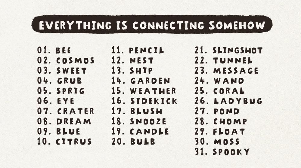 The organiser provided 31 isolated keywords as a guidance — it was up to each artist to interpret them. In my own approach, I took this concept one step further and linked these unrelated keywords together from one day to another, as small glimpses into different stories.