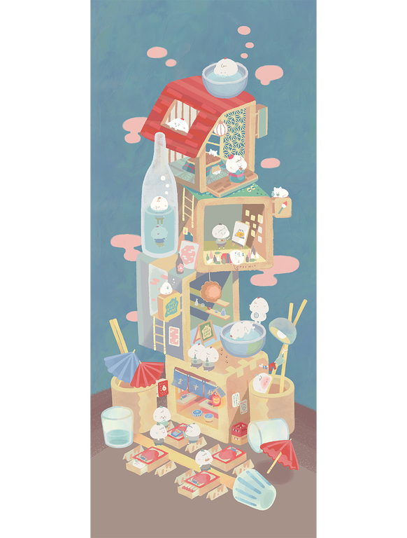 In December 2019, I organized a group exhibition in Berlin called “The Tipsy Home.” For this event, we brought real sake from Japan and invited guests to compare the actual taste of the sake with the illustrations from the Sake Art series. We also included a fun mini-game where guests could see if their impressions of the sake matched the artwork, making it an engaging experience for everyone.