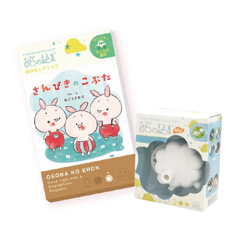 “Osora no Ehon” is an item that uses a smartphone’s LED light, a special projector, and a disc to project picture books onto the ceiling of your room through a free dedicated app. By operating the app, sound effects and music play, making storytelling a more enjoyable experience.