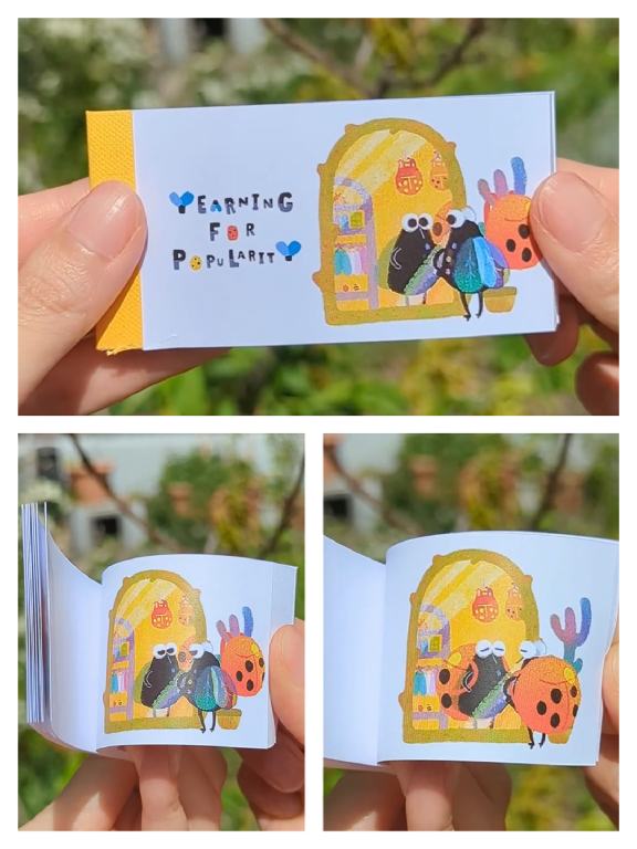 “Yearning for Popularity” is about a young fly aspiring to the popularity of ladybugs, unaware of its own unique beauty. The concept aims to highlight that everyone has their own special shine. I animated the story using frame-by-frame techniques in Photoshop, adding textures that give life and a handcrafted feel to the digital work. The animation was created as part of a month-long daily challenge (“Peachtober 2023”).