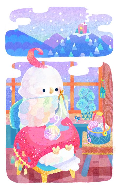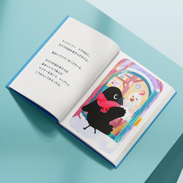 The story is about a seven-colored parrot Nanami that lives in the winter mountains, who knits with its feathers, turning them into fine threads, and exchanges its woven creations with visitors for the mountain’s nuts and berries.